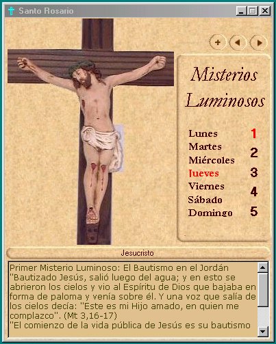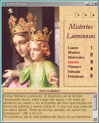 | Con las flechas derecha e izquierda, se puede ir cambiando de imagen para elegir la deseada. Haciendo click en los números se cambia de misterios | ![]() |